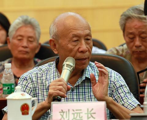 中國工藝美術(shù)大師劉遠(yuǎn)長發(fā)言。(王東 攝)