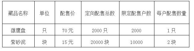 2、 根據(jù)投資人開(kāi)戶(hù)的時(shí)間先后順序進(jìn)行配售。1-2000名配售《雄鷹盤(pán)》,2001-12000名配售《紫砂泥》。