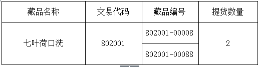 應(yīng)投資人會(huì)員申請(qǐng),經(jīng)本交易所對(duì)申請(qǐng)人信息核實(shí)以及出庫藏品復(fù)驗(yàn)后,提貨藏品已完成發(fā)貨,提醒廣大投資者注意盤面藏品數(shù)量變化。提貨藏品信息如下: