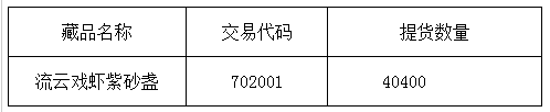 應(yīng)發(fā)行會(huì)員以全流通模式申請(qǐng),本交易所對(duì)申請(qǐng)人信息核實(shí)以及出庫(kù)藏品復(fù)驗(yàn)后,提貨藏品已完成發(fā)貨,提醒廣大投資者注意盤面藏品數(shù)量變化。提貨藏品信息如下: